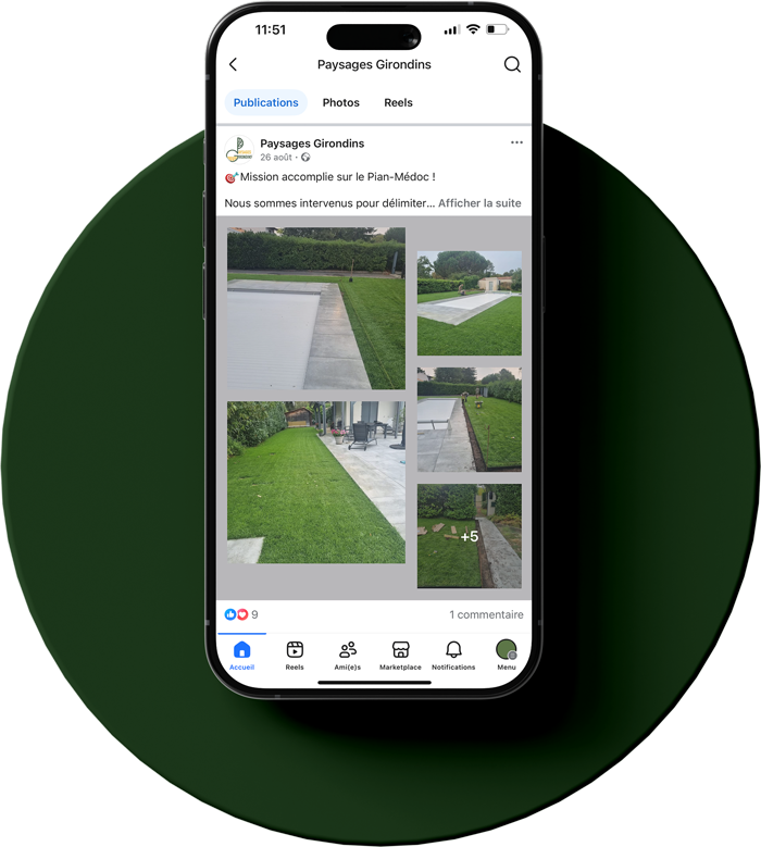 Suivez Paysages Girondins sur nos réseaux sociaux et découvrez nos réalisations, conseils et inspirations au fil des saisons. Nous partageons régulièrement des photos avant/après, des idées d’aménagement extérieur et des astuces pour entretenir vos espaces verts toute l’année.